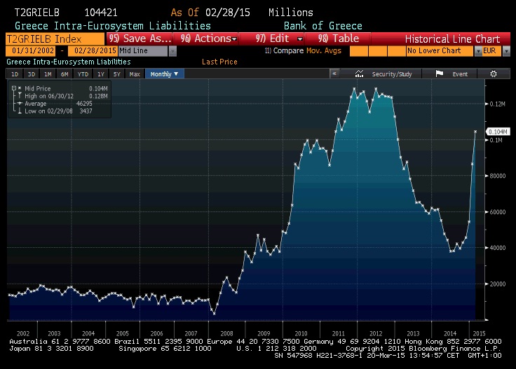 - As shown in chart, since 2009 Greek Target 2 imbalance rose from just a few thousand euros to more than 0.12 million Euros by 2011. Deterioration was sharp.