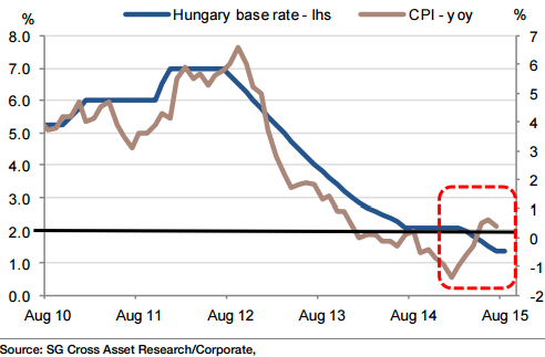 The NBH kept its key 2-week deposit rate steady at a record low of 1.35% on 25 August. President Matolcsy has pledged to keep interest rates steady for "a very long time".