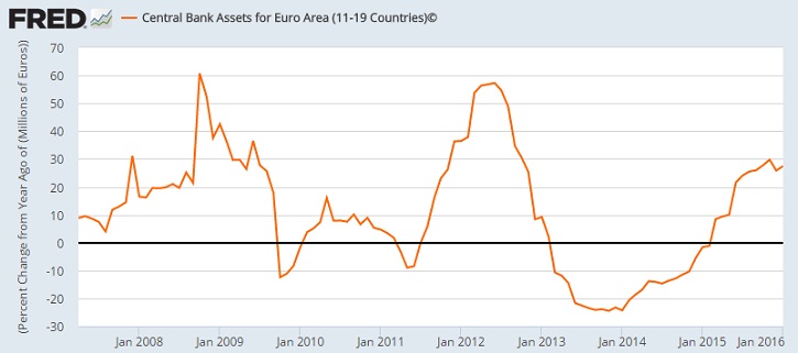- Our analysis of Euro area central banks' balance sheet shows, expansion is not really occurring at record pace. Both in 2008 crisis, and Euro Zone debt crisis of 2012, expansion pace were far greater.