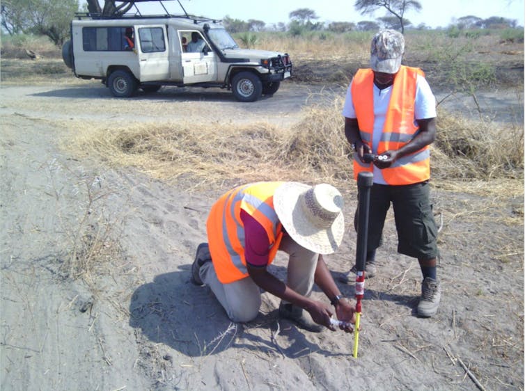 Soil sampling for helium and capturing natural helium seeps in Tanzania. Pete Barry, Author provided