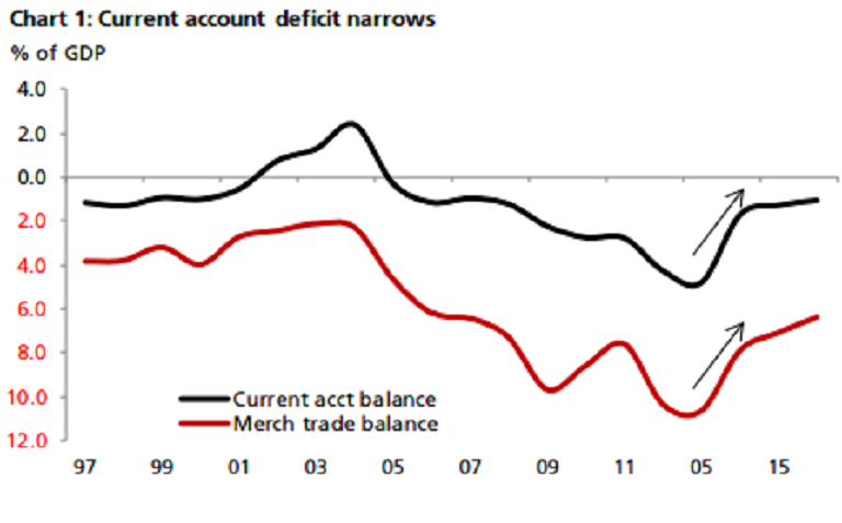 Amongst invisibles, service receipts and private transfers and/or remittances are also showing signs of strain. Thus the current improvement in the current account is not as favorable as the one in 2002-04. Against this backdrop, the CAD should narrow to 0.8-0.9 percent of GDP from 1.1 percent in FY15-16. A stronger current account balance would be at risk if crude prices hit above USD 60/bbl this year, DBS reported.