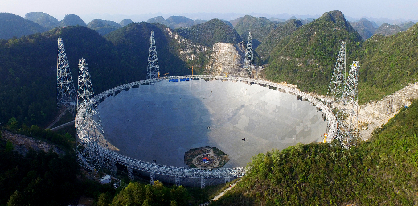 The world’s largest single-dish radio telescope, FAST (the Five hundred metre Aperture Spherical Telescope), is rapidly taking shape in China.