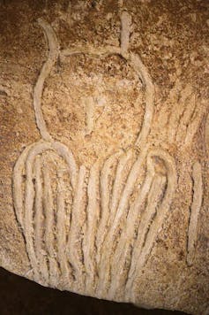 The oldest known representation of a bird is in Chauvet cave, France - a 30,000-year-old owl drawn with fingers on a soft wall. Wikimedia Commons, CC BY-SA
