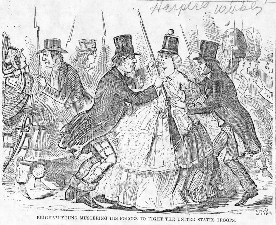 Similarly, their religious practices attracted suspicion. In the 1840s, the founder of Mormonism, Joseph Smith, began practicing polygamy, and though he tried to keep it secret, rumor quickly spread. As one Missouri writer described them in 1837, they were a “mass of human corruption, [a] tribe of locusts, that still threatens to scorch and wither the herbage of a fair and goodly portion of Missouri by the swarm of emigrants.”