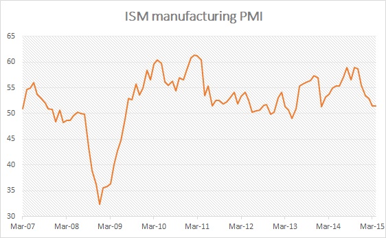 - 2014 has been strong year for US, when ISM PMI reached as high as 59 in October. However growth has been lagging since then. ISM PMI still remains in expansionary territory but growth rate reached lowest level since January 2014, facing headwinds from stronger dollar in first quarter. Moreover lower commodity prices have pushed back investments in the mining sector leading to job losses there.