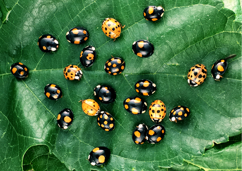 It has long been suspected that the colouring of a ladybug, and thus variations in the gene pannier, affect other traits involved in the survival and reproduction of this insect. Thus, the distribution of the different coloration forms within populations could reflect an adaptive response to local constraints (for example, climatic constraints). In this context, an interesting remark can be made, linking the colour to the invasive character of the harlequin ladybug, which from its native area in Asia, recently colonised the four continents (North America, South America, Europe, and Africa).