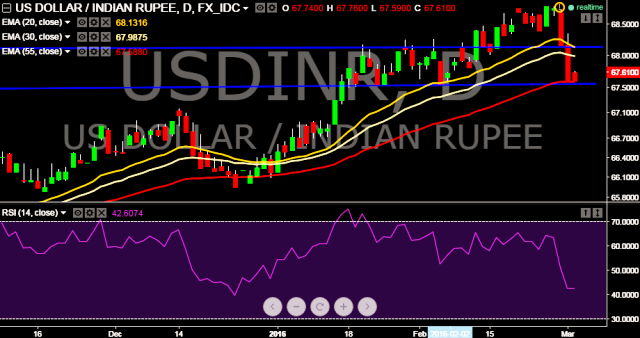 - Expected short term trading range for USD/INR is 67.50 to 68.78 levels.