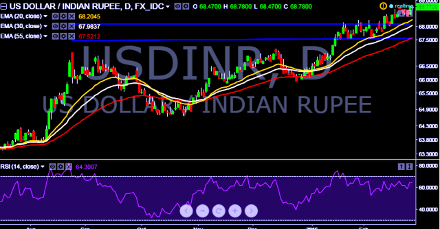 - Alternatively, reversal from this level will drag the USD/INR around 68.00 levels.