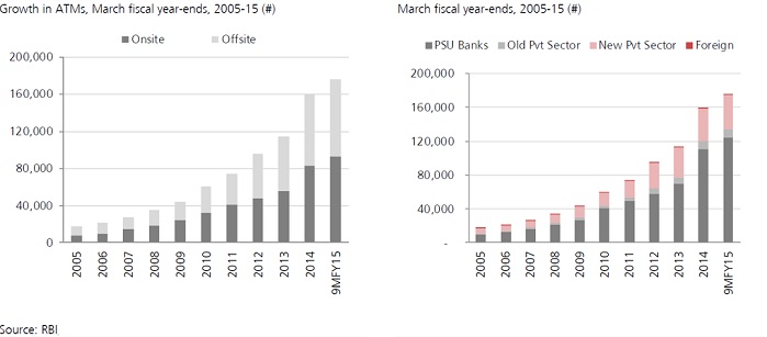 That is public sector banking stocks. A chart from RBI is laid above that shows, as of now India has about 1.76 million ATMs which grew at an annual pace of 25% over the last decade and of that 71% belongs to public sector banks.