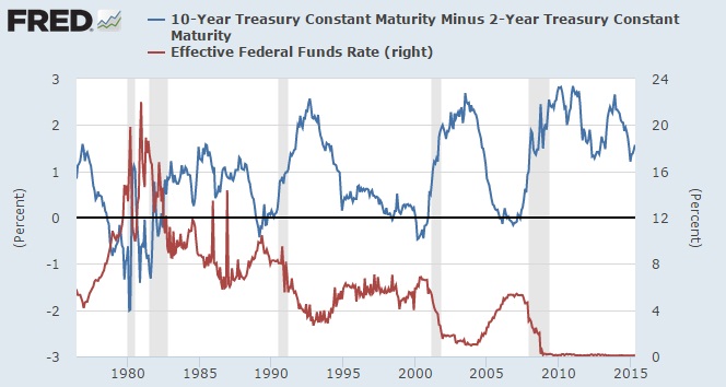- As shown, yield differentials between 2 year and 10 year treasuries drop, when federal funds rate goes up.