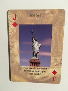 The Pentagon even distributed decks of playing cards with photos of cultural sites to troops serving in Iraq and Afghanistan to underscore the need to safeguard heritage sites and artifacts. One of the cards showed a picture of the Statue of Liberty, with the words, “How would we feel if someone destroyed her torch?”