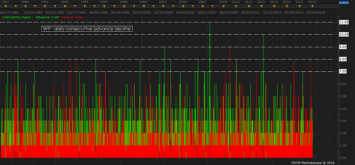 - There has been about 10 instances, when oil price (WTI) has declined for seven consecutive days.