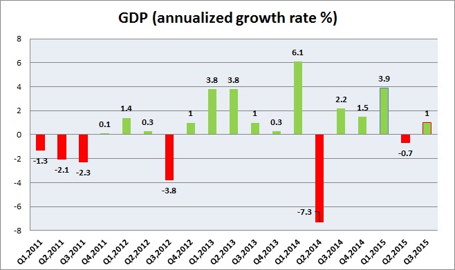 GDP grew by 1% annualized rate in third quarter, sharply in contrast to previous figure of -0.8% contraction. Economists expected improvement but just by 0.2%. With today's figure Japan is technically out of recession. Japanese economy was thought to have dropped into recession after first flash reading, which got revised today.