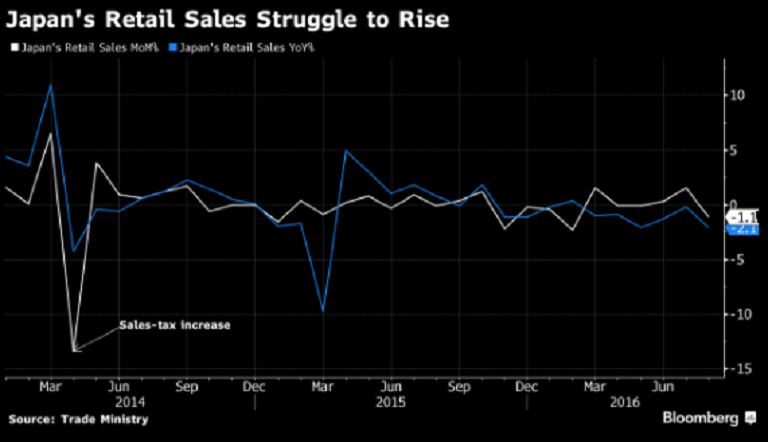 Retail sales in Japan fell for the sixth straight month in a row during the period of August, signaling renewed pressure on the country’s policymakers to adopt steps to bolster household spending in the economy.