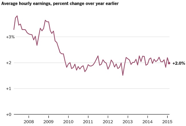 - If the Job market is so fantastic, why isn't the pay rising? Notably wage growth in US remained sluggish since 2010 and averaging about 2 percent, much lower than pre crisis level as explained in the chart.
