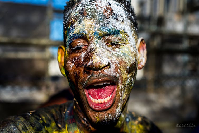 The carnival body is a collective expression. A reveller on J'ouvert Morning in Trinidad. Eduardo Skinner, CC BY-NC