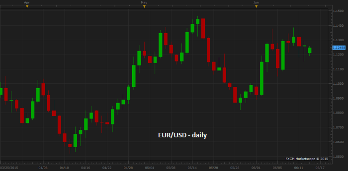 Euro remains stuck between Deal or No Deal, trading in tight range of 1.118 - 1.126 against dollar. Though range remained tight, implied volatility on 1 month options have reached highest level since 2011.