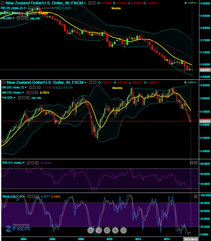 In our earlier posts we described leading technical indicators tend to signal NZD/USD could have trend reversal but the Chinese slowdown not only had a direct impact, in terms of the export of Kiwis dairy products and in terms of its prices as well, but the spillover of the cost that has to economies around Asia, dairy prices dropped to a twelve and half year low in August as the slowdown in China, the scale of the impact was obvious in the fact that the current dairy payout to farmers from Fonterra was the lowest in real terms since 1912.