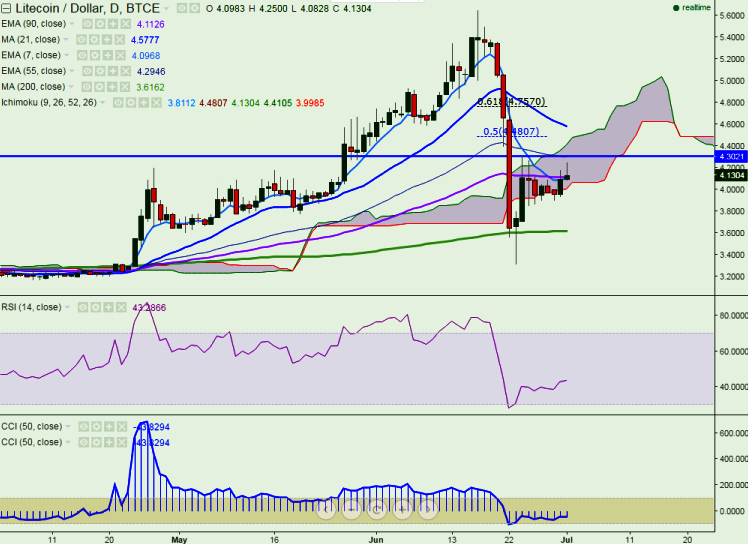 LTC/USD moved further north on Friday on newly found momentum. It opened at $4.09 levels and has hit a high of $4.25 so far in the day. It currently trades at 4.20 levels, at the time of writing.