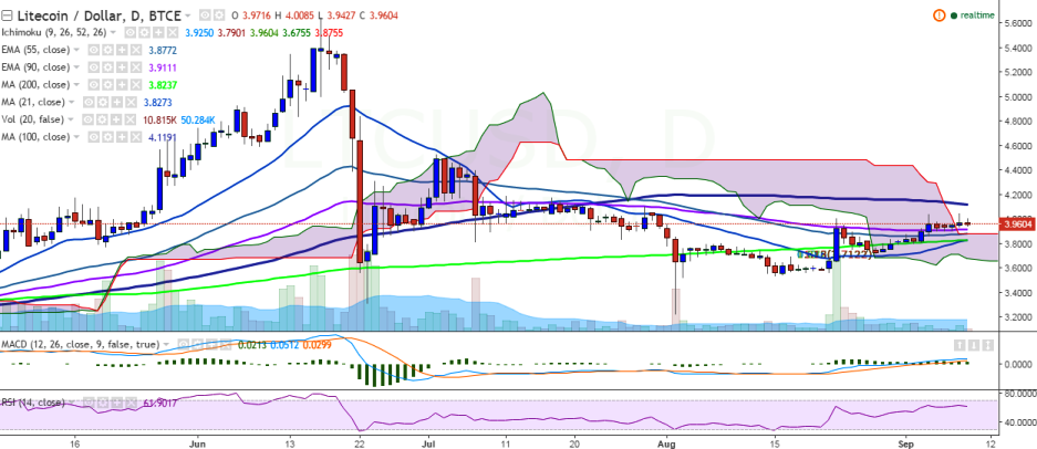 “LTC/USD is trying hard for a consistent break above 4.00 levels. Bullishness would be confirmed only above 100-day MA”, FxWirePro said in a statement.