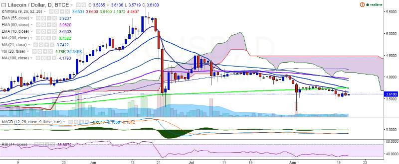 LTC/USD continues to trade flat on Thursday and currently trades at 3.60 levels at the time of writing (BTC-e). The pair seems to have taken support near 3.50 levels and is trying to sustain above this levels.