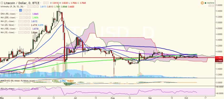LTC/USD is struggling to break above 21-DMA and is currently resting near 3.78 levels, where it currently trades (BTC-e).