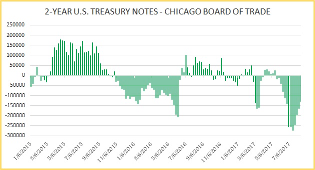 5-year treasury short positions got reduced for a third consecutive week, and by 53,604 contracts that brought the net position to -157.5K contracts.