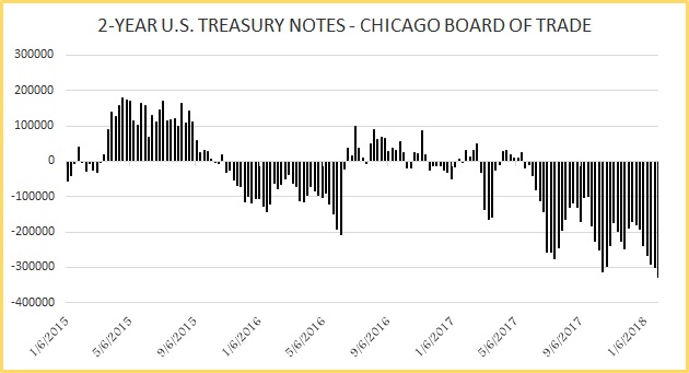 5-year treasury short positions declined for the second consecutive week, and by 41,560 contracts that brought the net position to -393.4K contracts.