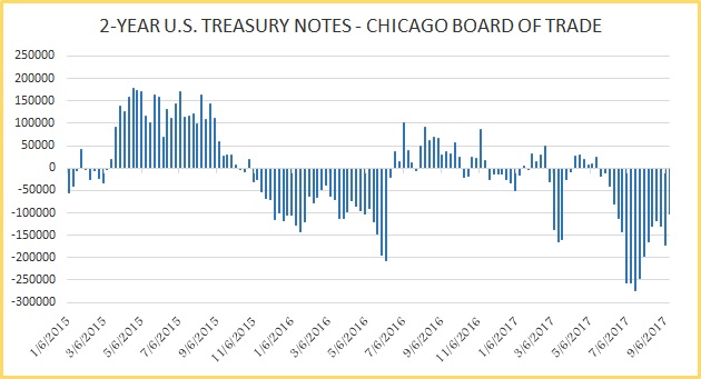 5-year treasury short positions got increased for the second consecutive week, and by 43,620 contracts that brought the net position to -120.2K contracts.