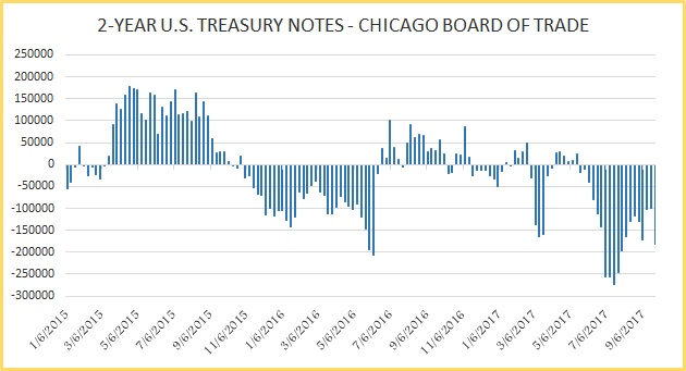 5-year treasury short positions got increased for the fourth consecutive week, and by 17,411 contracts that brought the net position to -228.3K contracts.