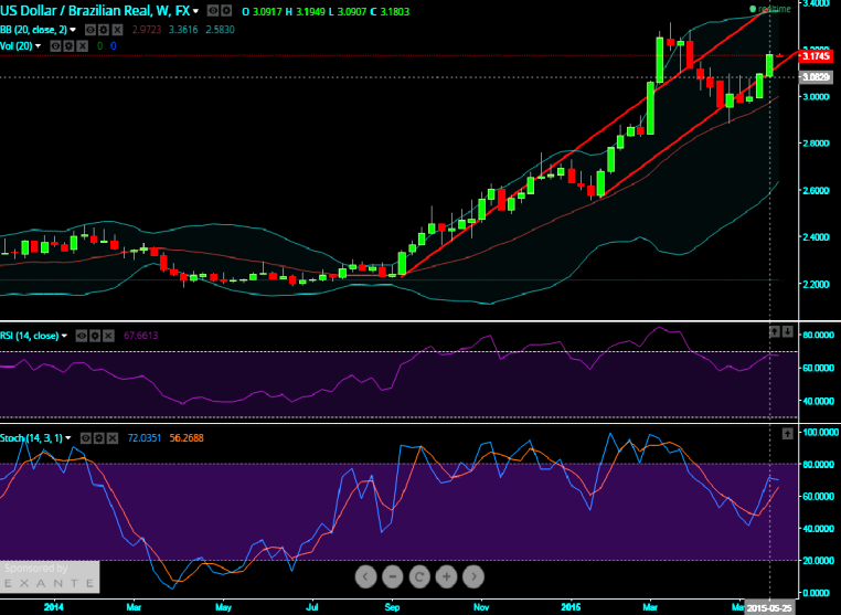 The pair on weekly chart trading near lower trend line at 3.1745 which is to form as a significant.