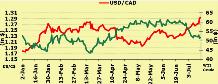 Global growth faltered in early 2015, principally in the U.S. and China. Slowing growth in China had pulled down commodity export prices, especially oil prices, which are important to Canada's economy. On the above chart, we can see that direct relationship between Loonie currencies with crude prices. Whenever, crude oil declined, loonie also declined vice-versa.
