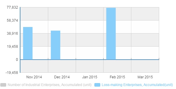 Total loss making enterprises now stands around 2% of total enterprises as of February, up from 1% in December 2014.