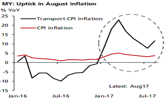 Malaysia’s consumer price-led inflation index (CPI) for the month of August surprised on the upside after four consecutive months of decline, headline CPI inflation picked up in August to register 3.7 percent y/y, from 3.2 percent previously.