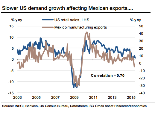 We remain hopeful of a bounce back in H2 and are still somewhat hopeful of decent Q2 growth also given the strength of the domestic consumption demand (as seen in retail sales numbers) so far this year. Exports and investment remain crucial to manufacturing growth and the near-term growth acceleration. With the US economy expected to improve in H2, we remain confident we will see an acceleration in trade-led growth in Mexico. However, as our US economists believe, US consumption momentum going into Q3 will not be as strong as previously expected and the choppiness in Q2 adds to the uncertainty. This could affect Mexico's growth outlook too.