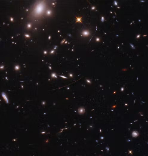 The Hubble Space Telescope has observed the most distant star ever seen – Earendel, meaning morning star. Even though Earendel is 50 times the mass of the Sun, and millions of times brighter, we would not normally be able to see it. We can see it due to an alignment of the star with a large galaxy cluster in front of it whose gravity bends the light from the star to make it brighter and more focused – essentially creating a lens.