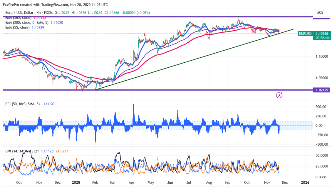 The pair is holding below the 55 EMA, 200 EMA, and 365 EMA in the 4-hour chart. Near-term resistance is seen at 1.1545, a break above this may push the pair to targets of 1.16000/1.1660/1.1700/1.1765/1800/1.1835/1.1850/1.1920. On the downside, support is seen at 1.1500; any violation below will drag the pair to 1.1435/1.1400.