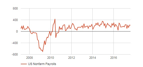 - A strong report especially the headline number (above 235,000) and wage growth could lead to a recovery in the dollar which has declined for 6 consecutive months.