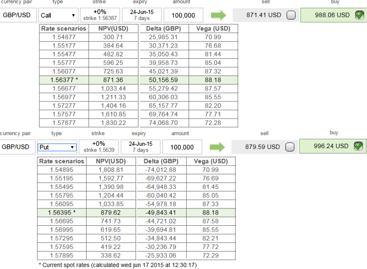 As we can see 7D At-The-Money -0.49 delta bear one touch options are priced in at and carries vega at 88.18 while 0.5 delta calls are available at with vega 88.13.