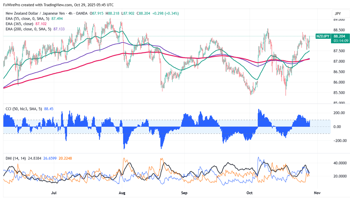 NZDJPY recovered above the 88 level as the yen lost momentum. The intraday trend is bullish as long as support at 86.95 holds. Having reached an intraday low of 87.91, it now trades around 87.95.