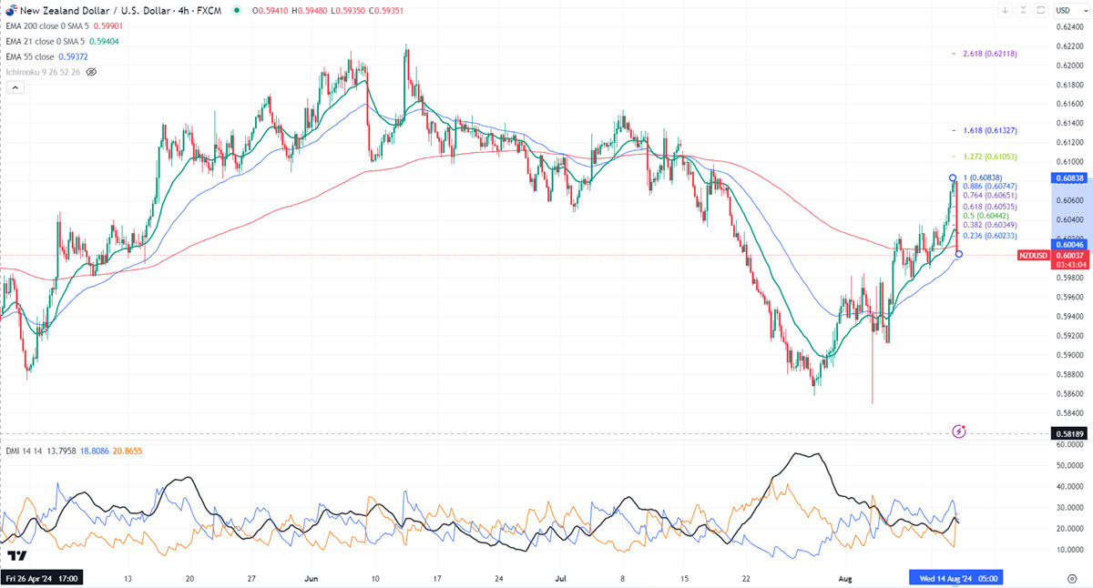NZD lost its shine after a surprise dovish rate cut. It declined sharply to 0.60040 and is currently trading around 0.60054.