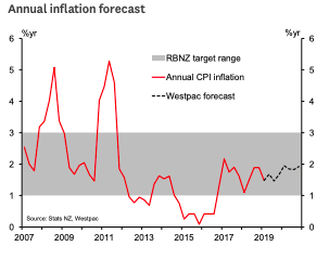That would see the annual inflation rate lift slightly from 1.5 percent to 1.7 percent, although the various measures of ‘core’ inflation are likely to be more or less unchanged. Inflation remains close to, but below, the 2 percent midpoint of the Reserve Bank’s target range.