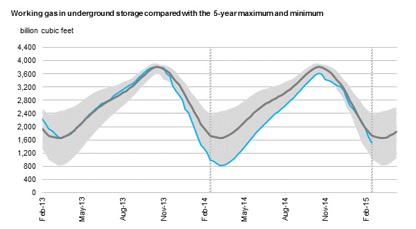 - Interesting is that working storage is 1512 billion as of march 6 2015, much below than 5 year average of 1737 billion cubic feet.