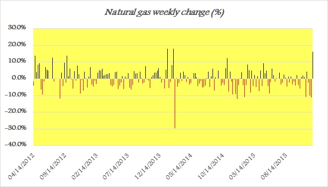 From price rally it suddenly seems so. Natural gas is on its way for its best weekly run, since 2013 winter rush. Severe winter, which was just carrying on rampaging. Price was up 18% twice during last winter and early 2014. This week natural gas is up 16.4% so far.