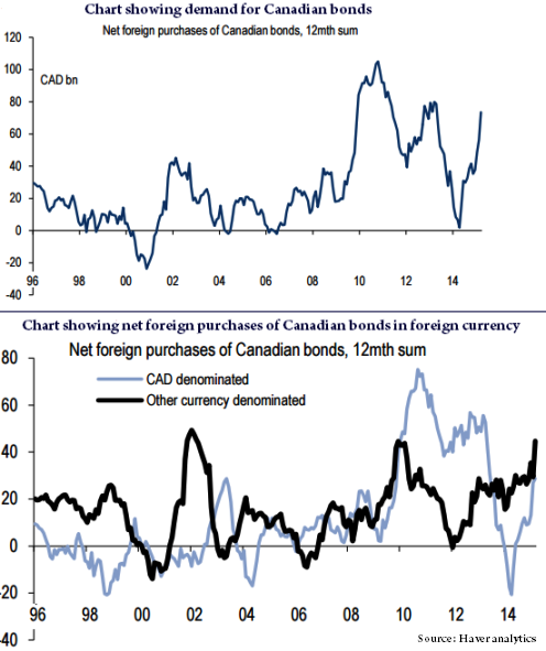 - High demand for Canadian bonds bearing coupons in foreign currency: Net foreign cash inflows in Canadian debt were viewed as a safe haven destination.