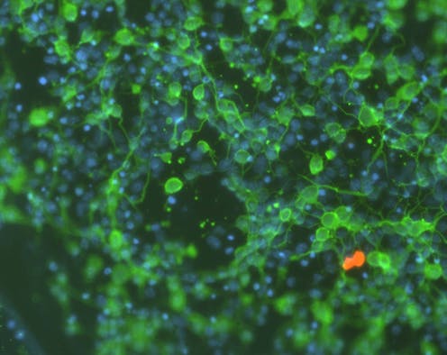 Neuroscientists are still learning how things work inside even this small ‘mini-brain’ cluster of neurons and related cells. Hoffman-Kim lab, Brown University/National Science Foundation