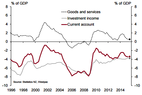 "We estimate that the annual current account deficit narrowed slightly from 3.5% to 3.4% of GDP", says Westpac in a research note.