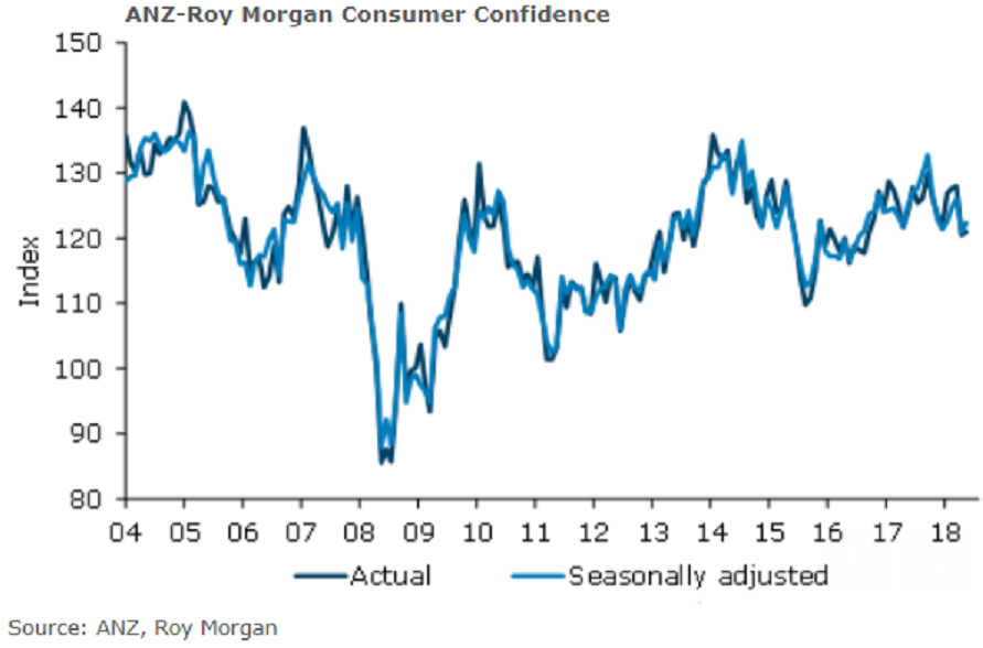 New Zealand’s ANZ-Roy Morgan consumer confidence Index remained steady at 121 in May. This is just above the average of the series since its inception in 2004. On a seasonally adjusted basis, the index rose 1 point to 122.