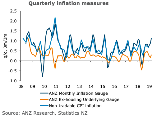 New Zealand’s ANZ Monthly Inflation Gauge dipped 0.1 percent m/m in March, but strength in the early months of the year took the quarterly increase to 1.1 percent for Q1. The Gauge has given a very accurate read on non-tradable inflation in the last two CPI prints.