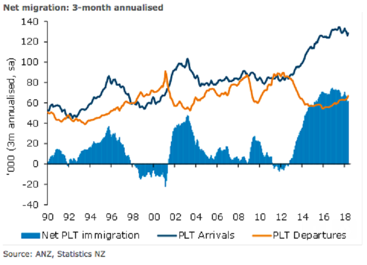 New Zealand’s monthly net migrant inflows continued to trend downwards, but ticked up on last month as arrivals bounced while departures continued to lift. Short-term visitor arrivals lifted and continue to hold at elevated levels. Strong migration-led population growth has been a key driver of economic activity this cycle and with net migration well and truly past its peak, the impetus to GDP growth is shrinking, ANZ Research reported.
